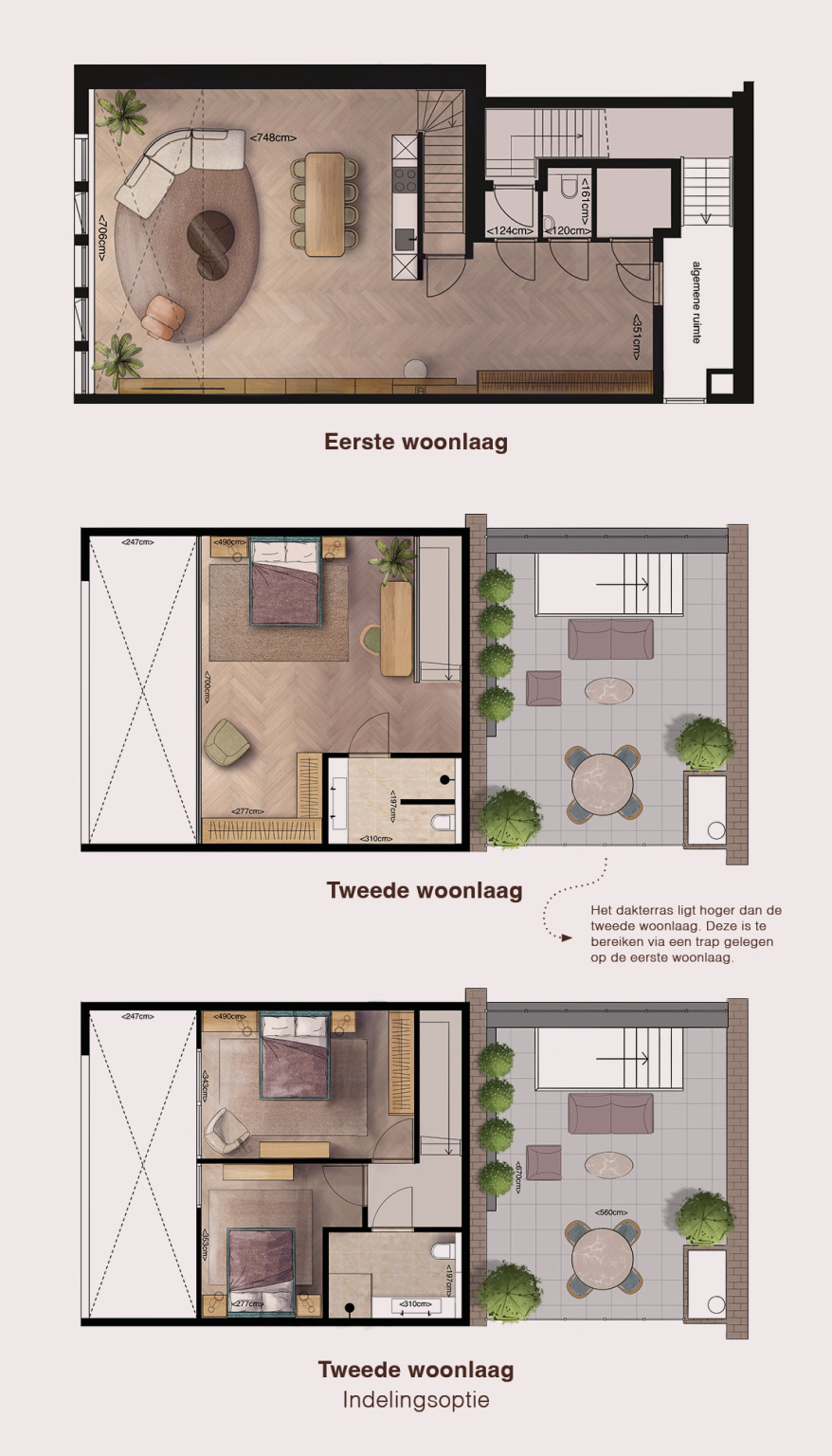 Deze unieke en luxueuze stadswoningen verdeeld over twee woonlagen heeft een schitterende vide en een royaal dakterras. Op de tweede woonlaag is ruimte voor een royale slaapkamer met badkamer. Een indelingsoptie biedt de mogelijkheid tot een tweede slaap- of werkkamer. Uniek aan deze woningen is het besloten dakterras, dat halverwege de tweede woonlaag ligt. Hier zult u heel wat genoeglijke uurtjes doorbrengen.